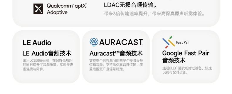 ● 支持蓝牙6.0和Auracast™无线广播音频技术,带来全新的音频共享体验