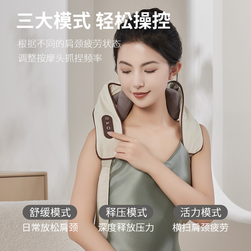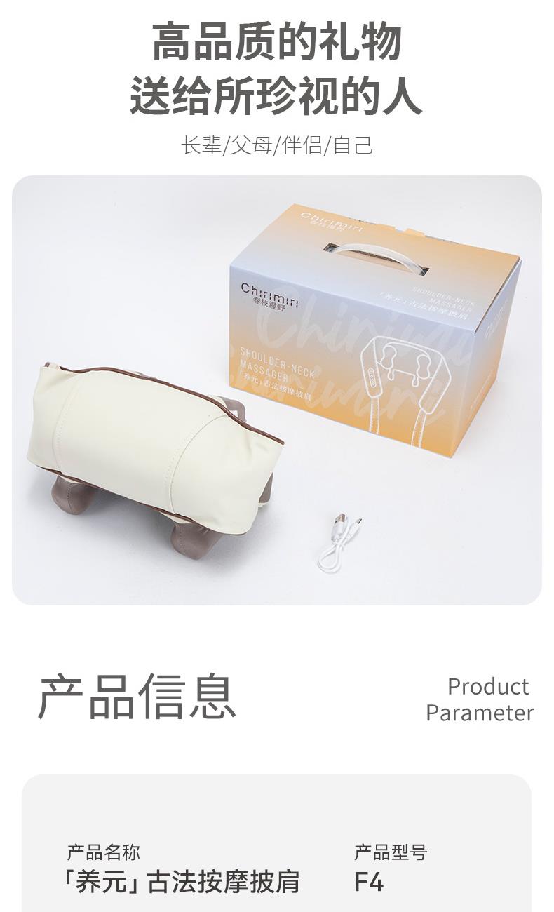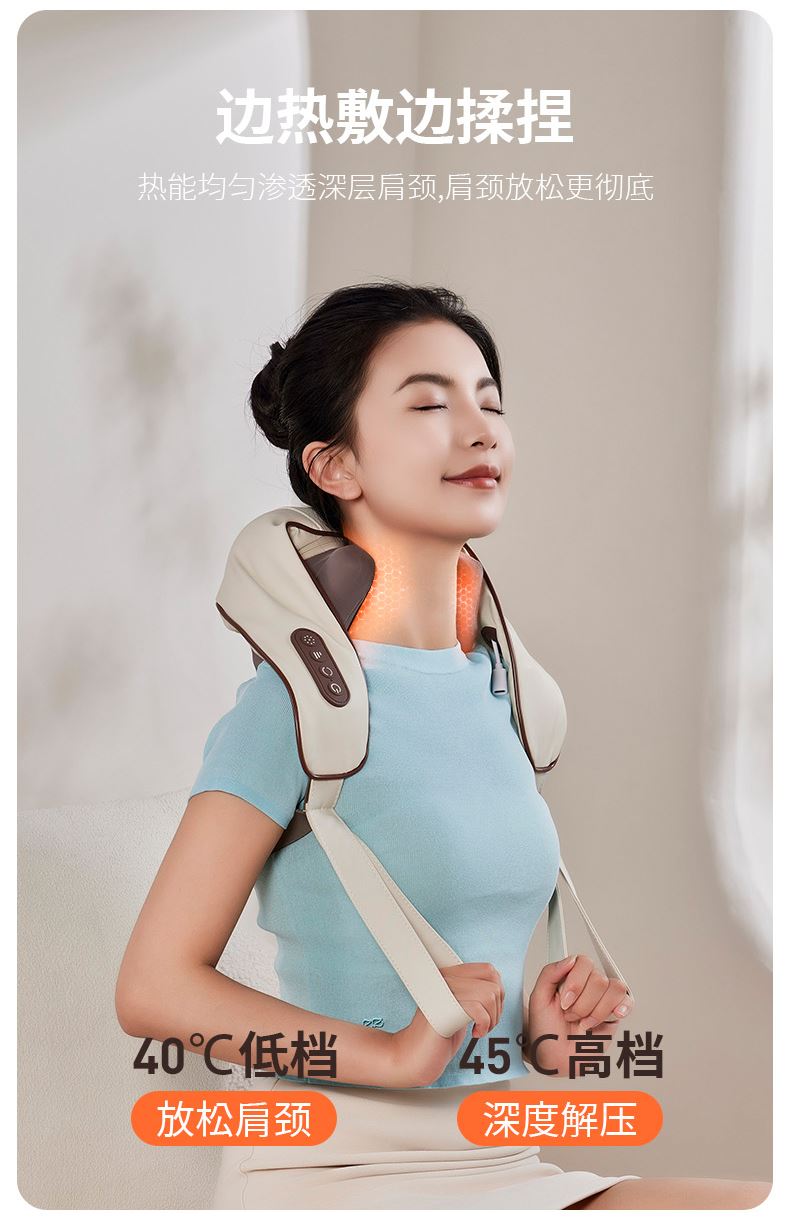 额定电压:5V 额定功率:10W 默认定时:10分钟 电池容量:2000mAh 净 重:1.3kg 模拟人手八字揉捏,肩颈×斜方肌倍享轻松 2档热敷温养,快速舒缓酸胀感 2大模式一键心选,强劲揉捏斜方肌 无线灵活穿戴,轻便实用双在线 一机拿捏多部位,10分钟舒颈松肩刚刚好