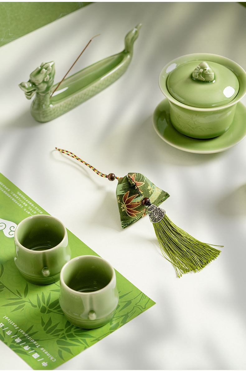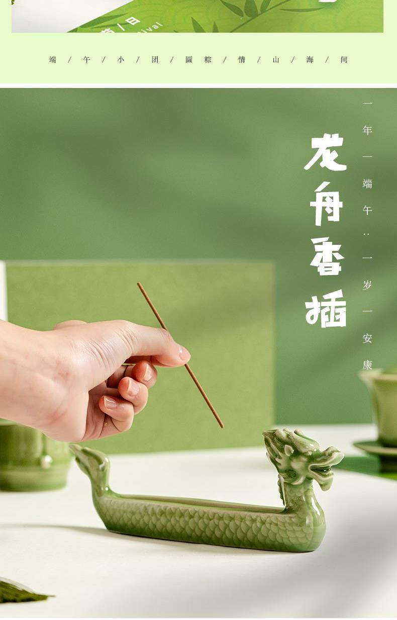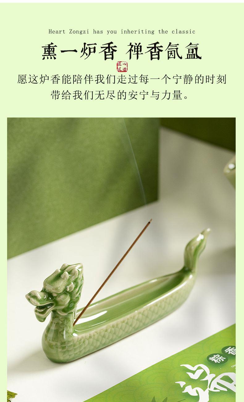 搭配端午元素龙舟香插和端午香囊,呼应端午文化,更显用心。