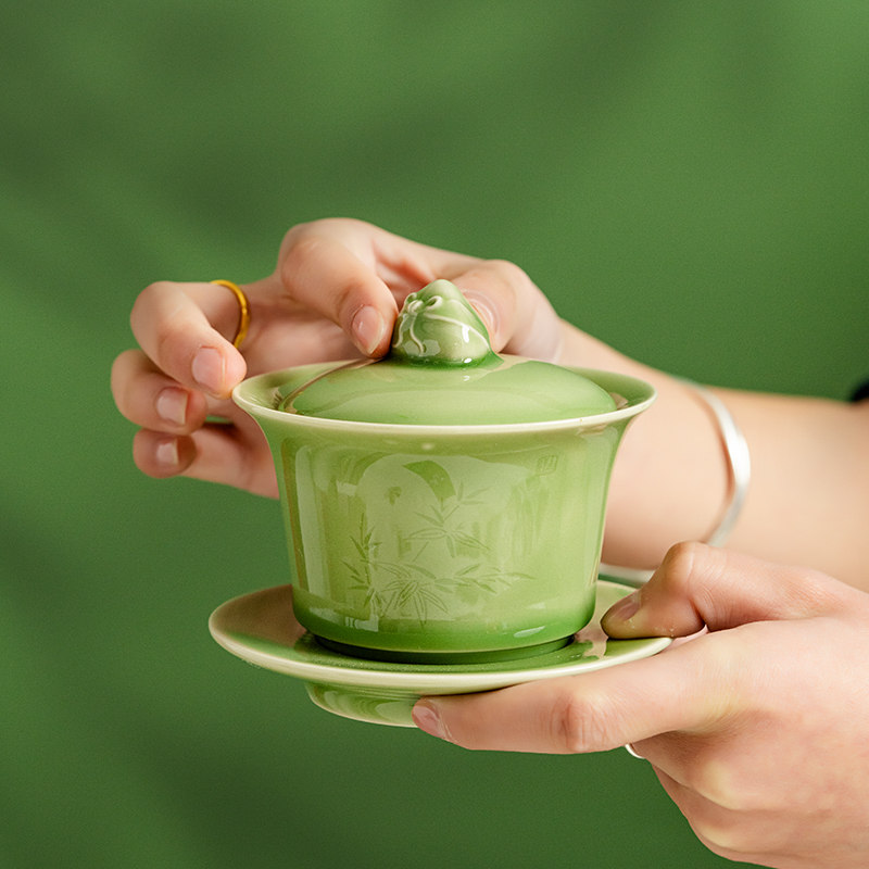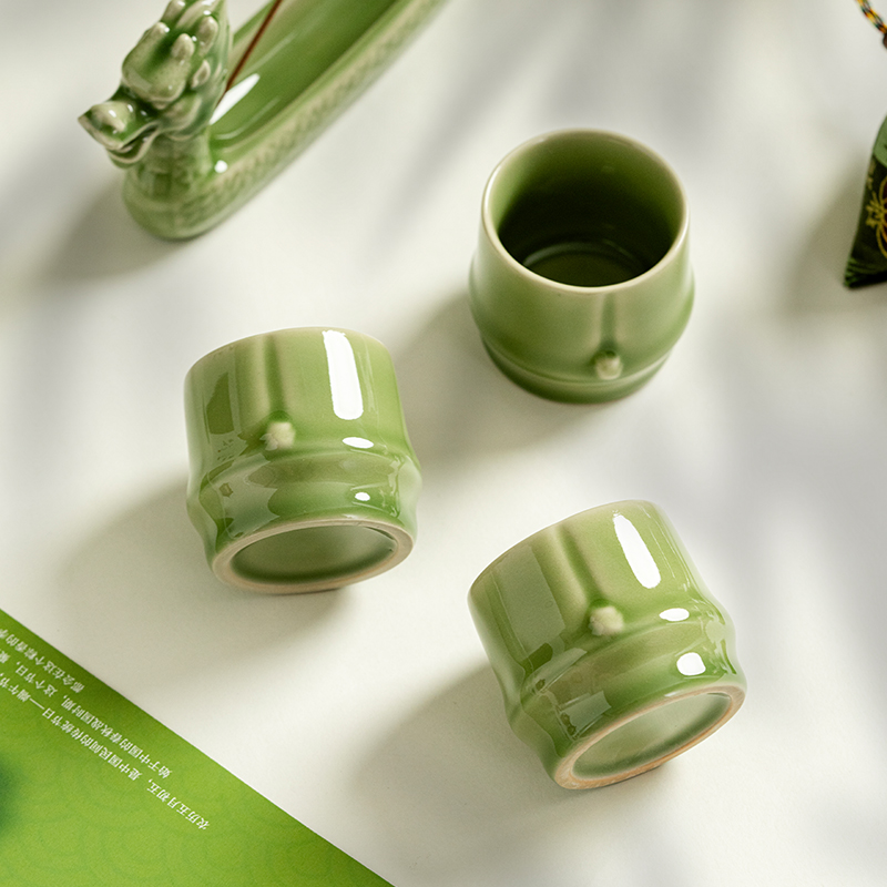 茶具选用高尚气节的“竹”元素,集安康和高升之意。