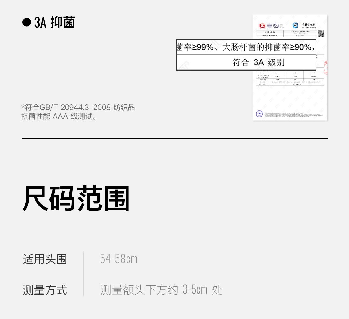 头围:54-58cm 材质:锦纶、氨纶 重量:20g(约1节5号电池) 2个硅胶防滑条,3A级kang菌,反光标语