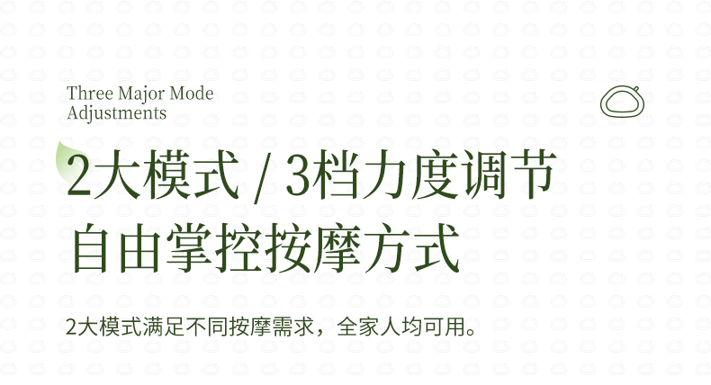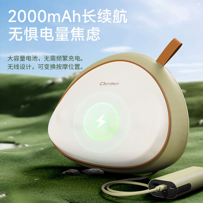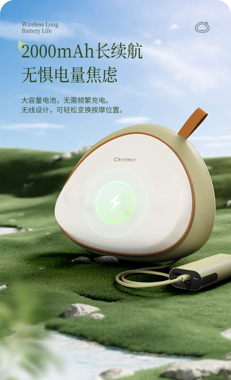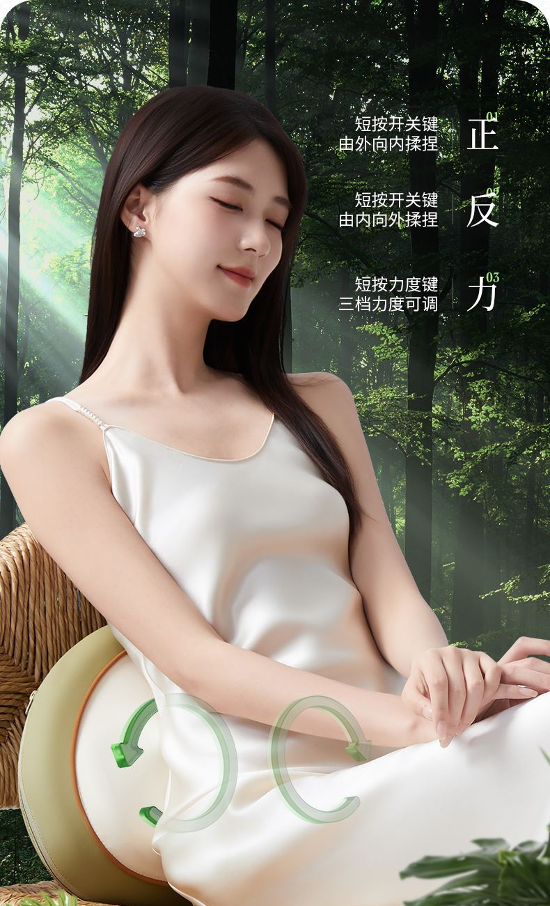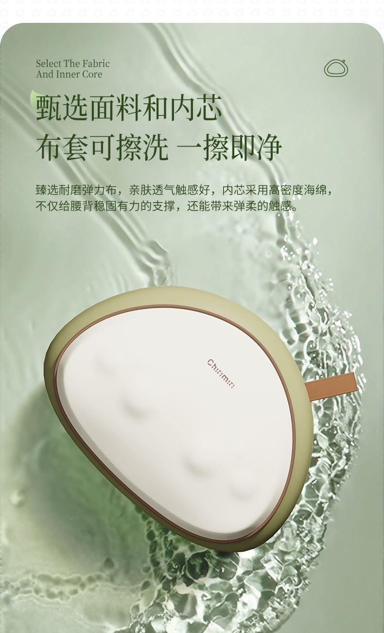 额定输入:DC 7.4V 额定功率:15W 电池容量:2000mAh 充电方式:Type-C 产品材质:猫爪 瑜伽布 产品颜色:抹茶绿 产品毛重:1.05kg 趣味颜值,集科技与美学,造就好体验 3D立体揉捏,轻享肩颈细致呵护 10分钟智能定时,浅歇一刻,能量回归 为你撑腰,仿生曲线设计,足够贴合 恒温热敷,深透舒缓,重现身体活力 不止腰背按摩,一机按遍全身