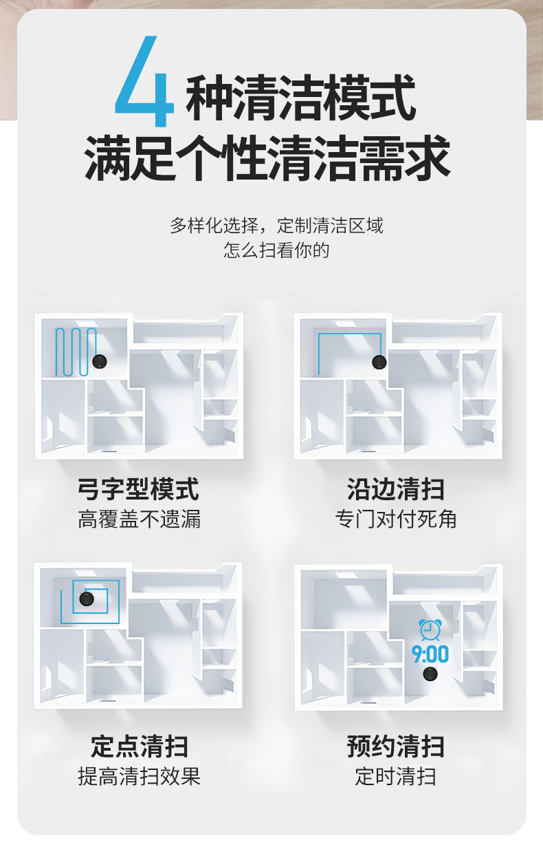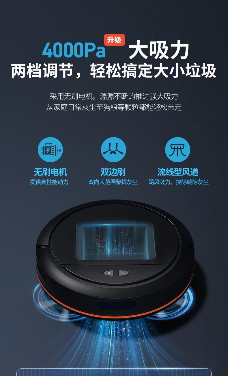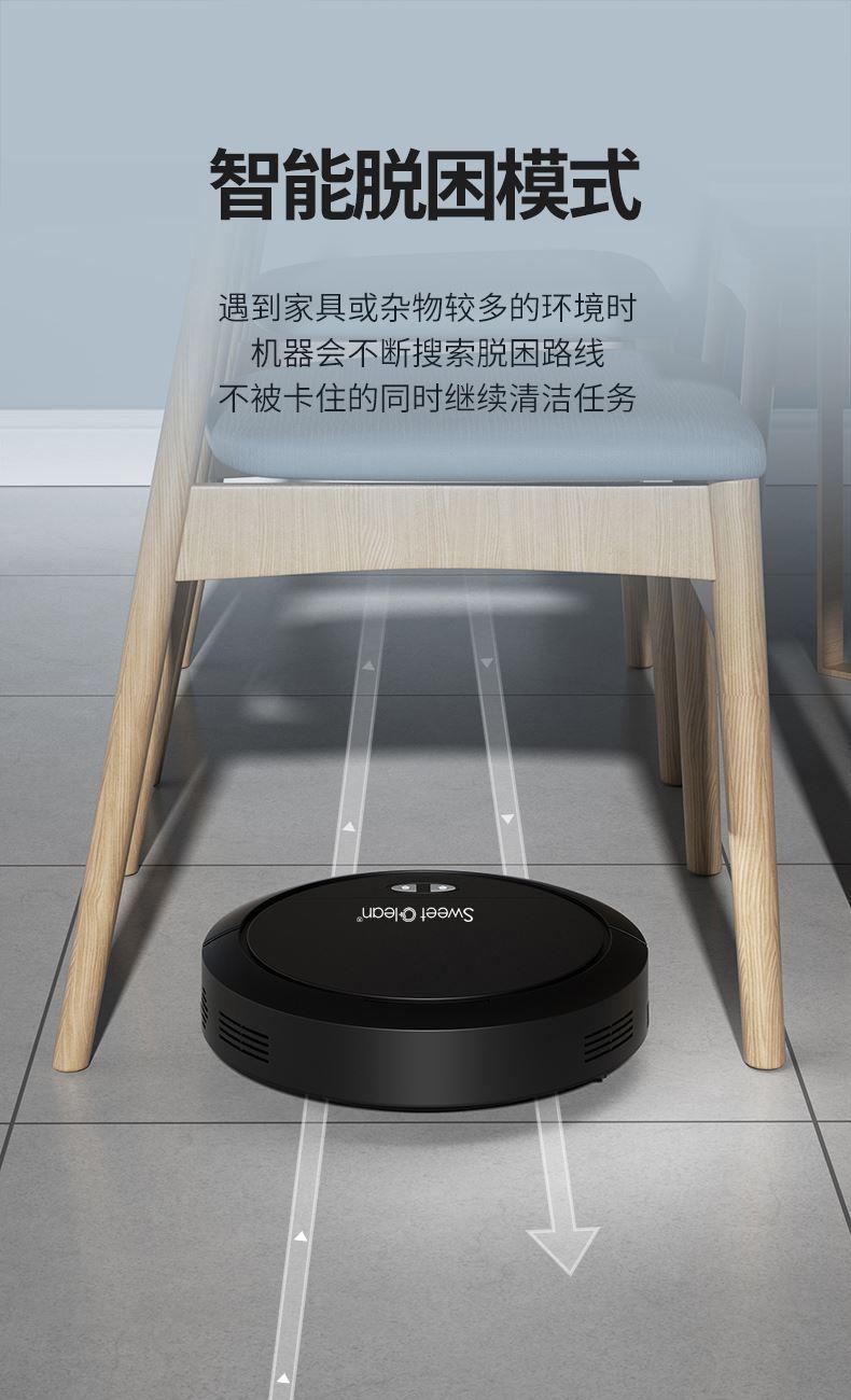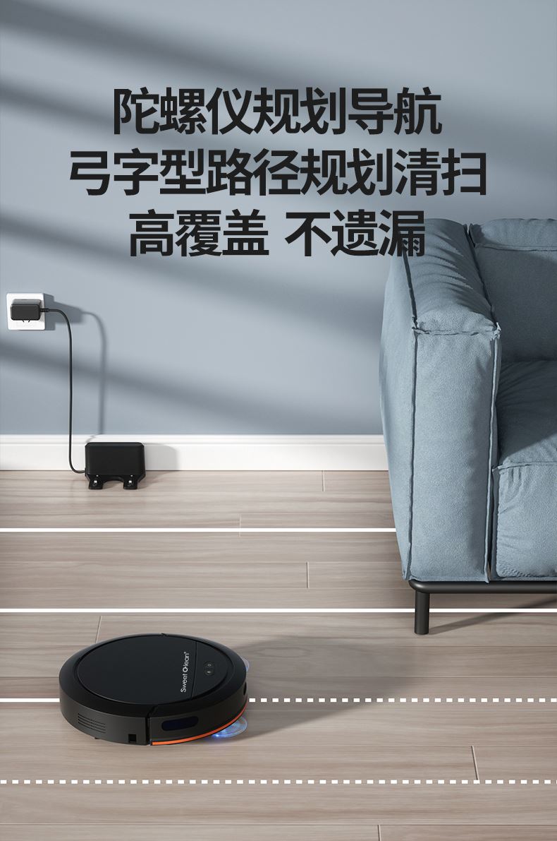 自带陀螺仪计步器,线路弓字规划,沿边清扫,不漏死角;