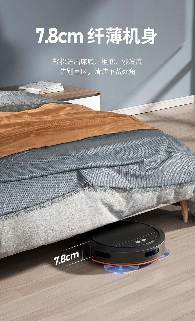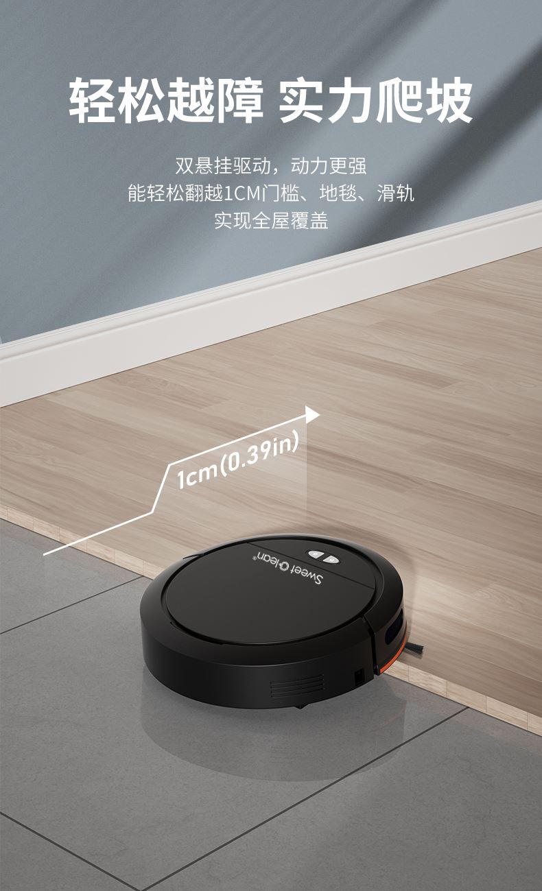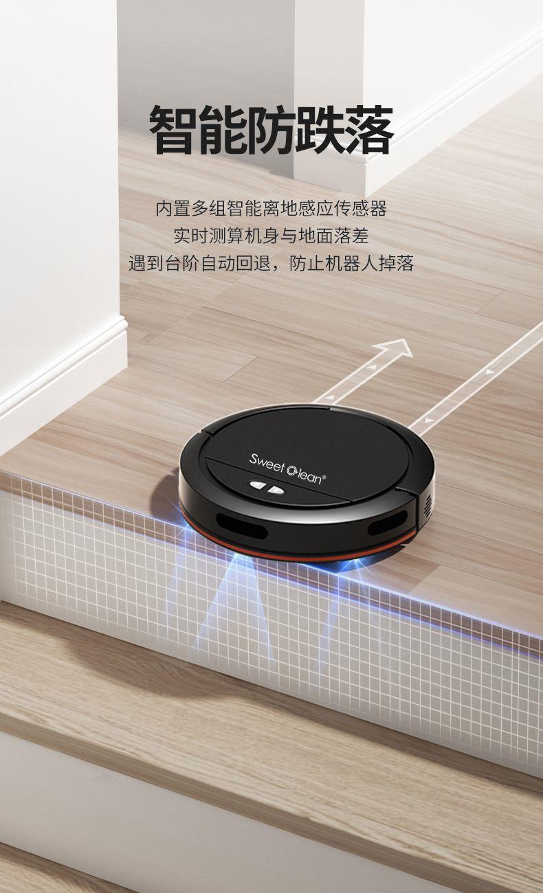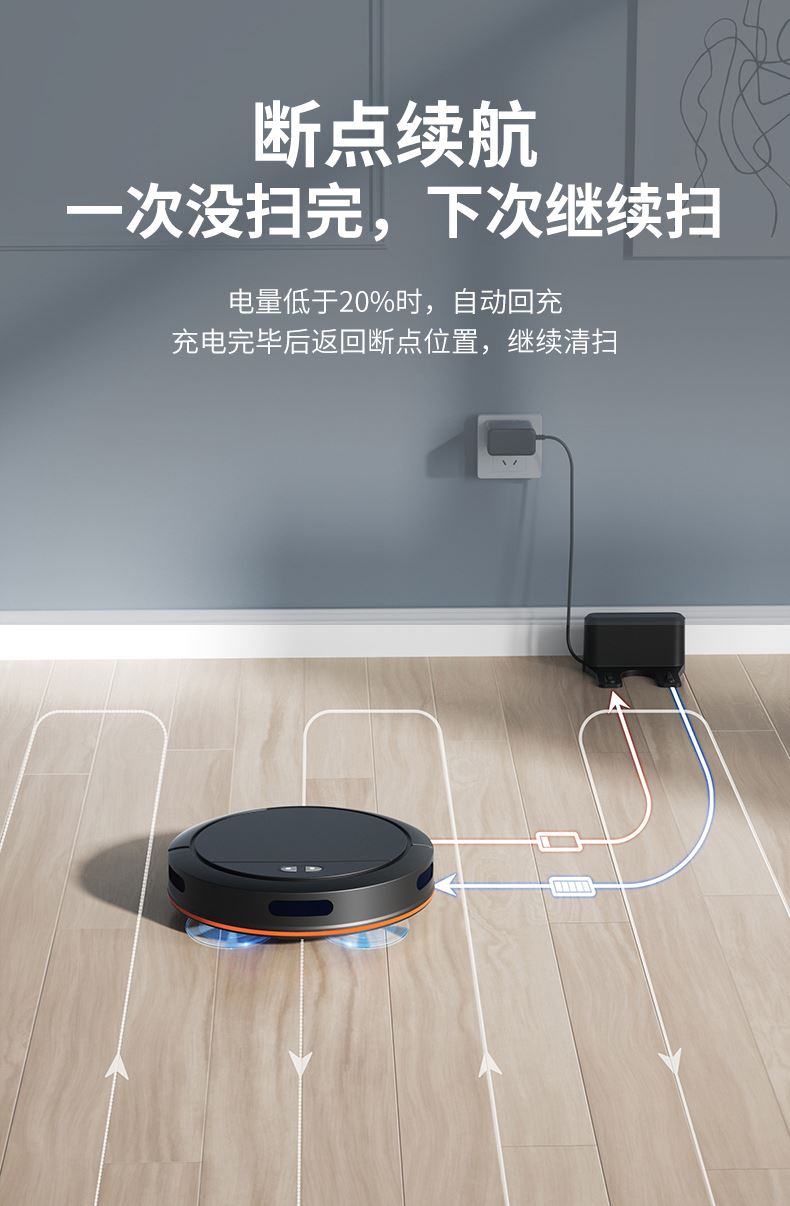 自带陀螺仪计步器,线路弓字规划,沿边清扫,不漏死角;