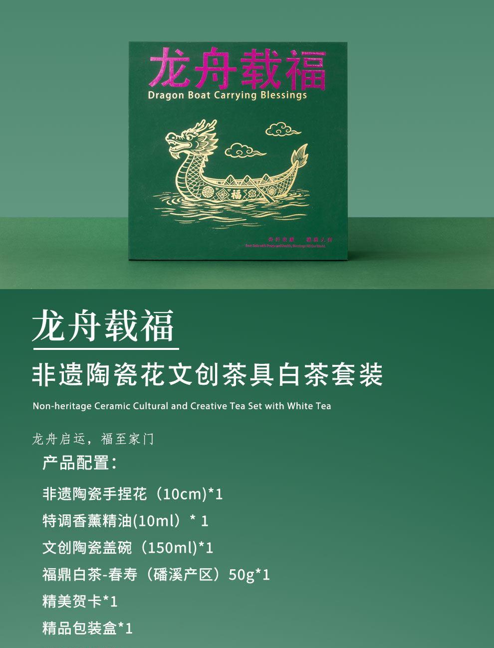 龙舟载福非遗陶瓷花文创茶具白茶套装