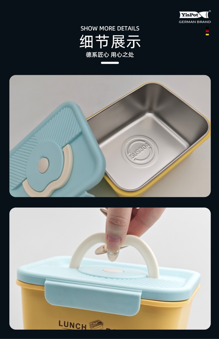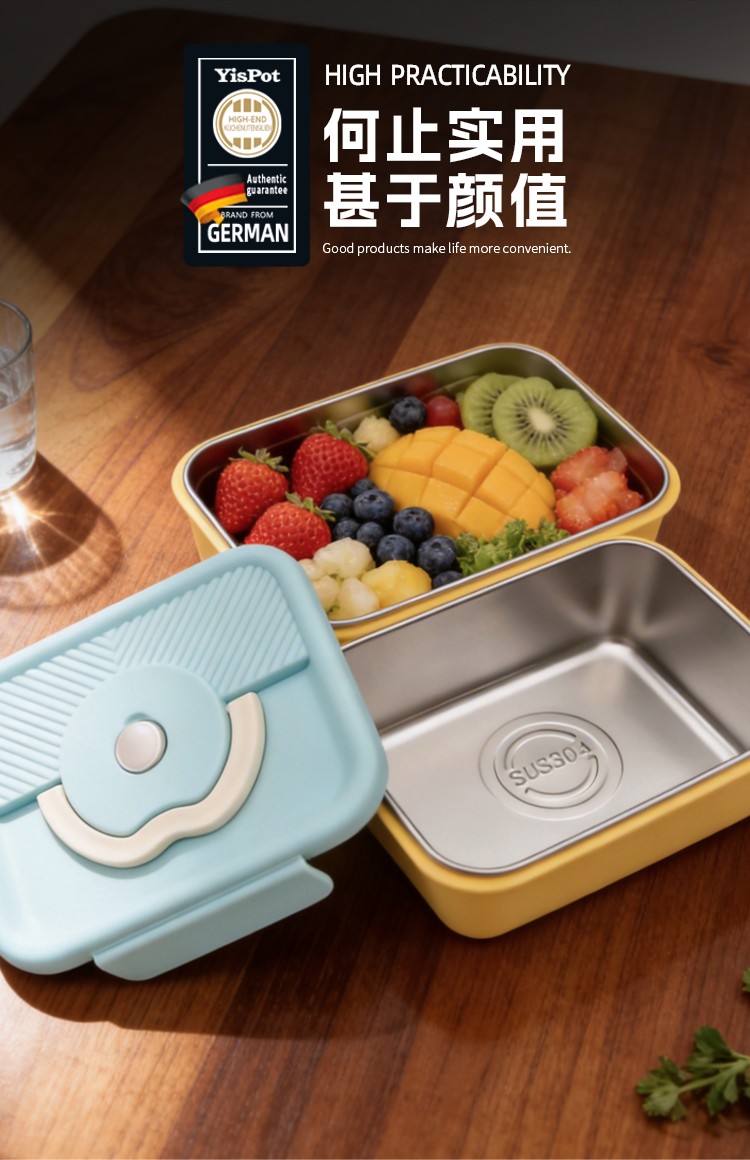 规格:保鲜盒500ML+500ML 型号:YP-8256 材质:304食品级不锈钢+PP 执行标准:GB/T 29601-2013 GB 4806.9-2023 304食品级,安全卫生 密封锁鲜,食材不串味 可注水/微波炉加热 硅胶密封圈,牢牢锁住不外溢