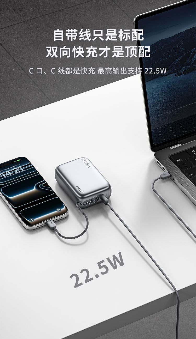 美能格MP52自带Type-C快充线+快充2万毫安移动电源