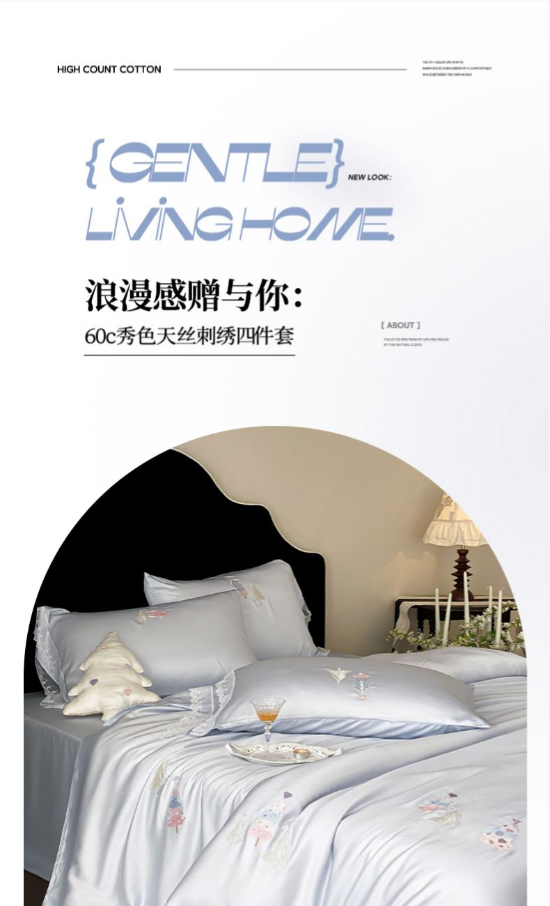 萱遇家纺60c秀色天丝刺绣四件套X-T8017