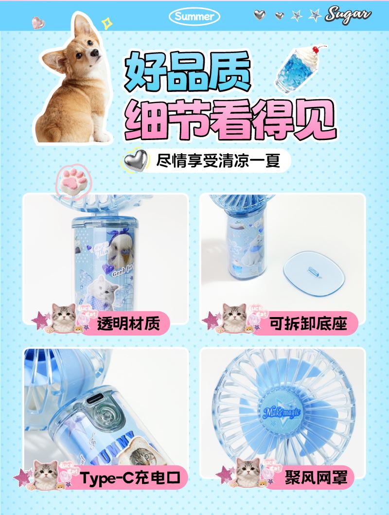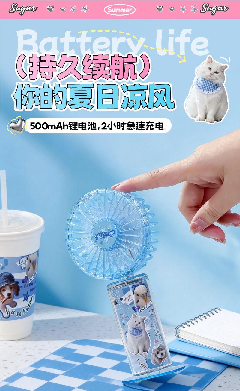 产品颜色:粉色、蓝色、灰色 产品尺寸:76x47x163mm 电池容量:500mAh 风速档位:3档 充电时间:2H 使用时间:60-120分钟 外箱尺寸:53.5*47.5*36.2cm 整箱毛/净重:17.3/16.3kg 备注:本产品须整箱发货 温馨提示:季节品库存数据波动较大,以当天确认出货时间为准