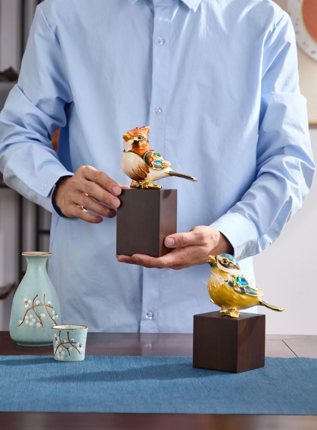 材质:树脂胎体+珐琅彩釉+实木底座 重量:大号0.6KG/小号0.5KG