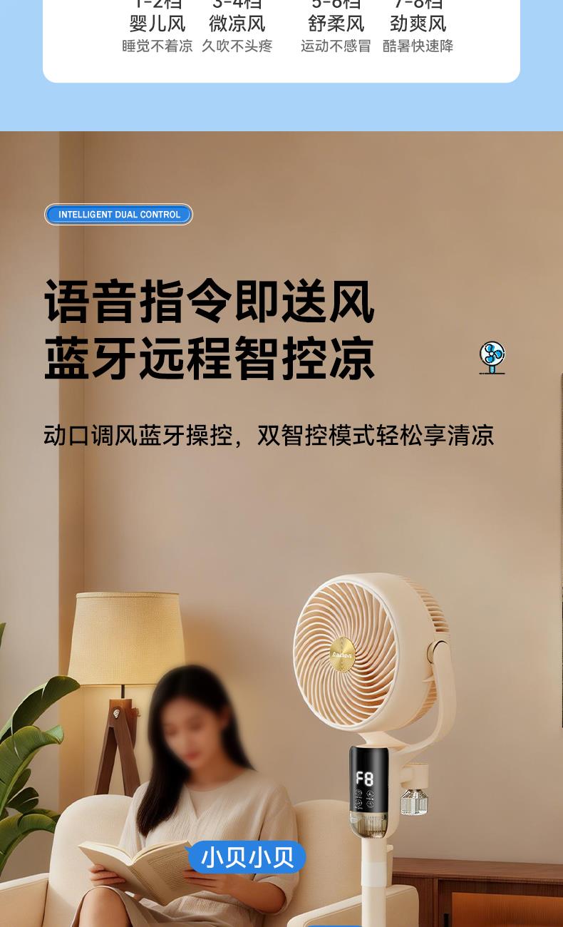 ◁专业风感调节 八档精细风速可调 匹配睡眠、日常、速通多种场景