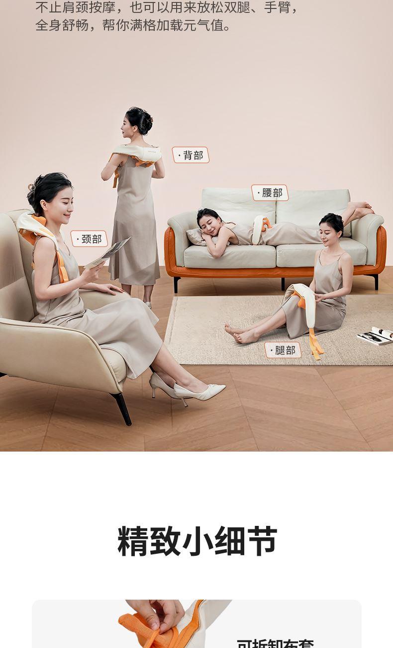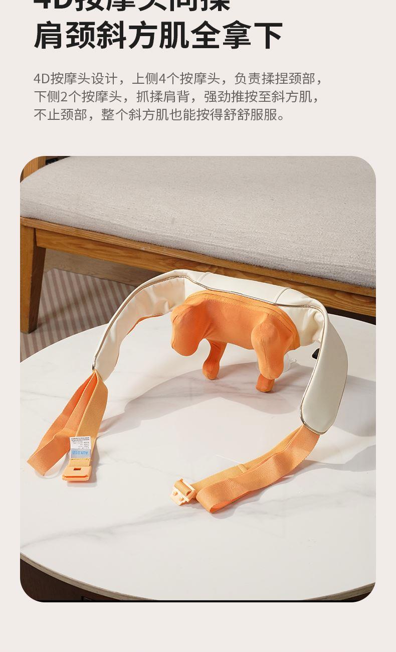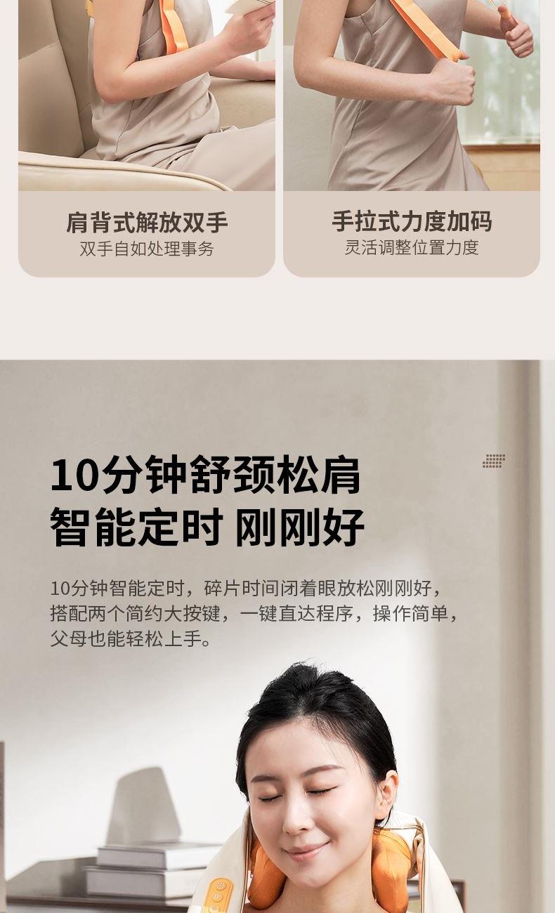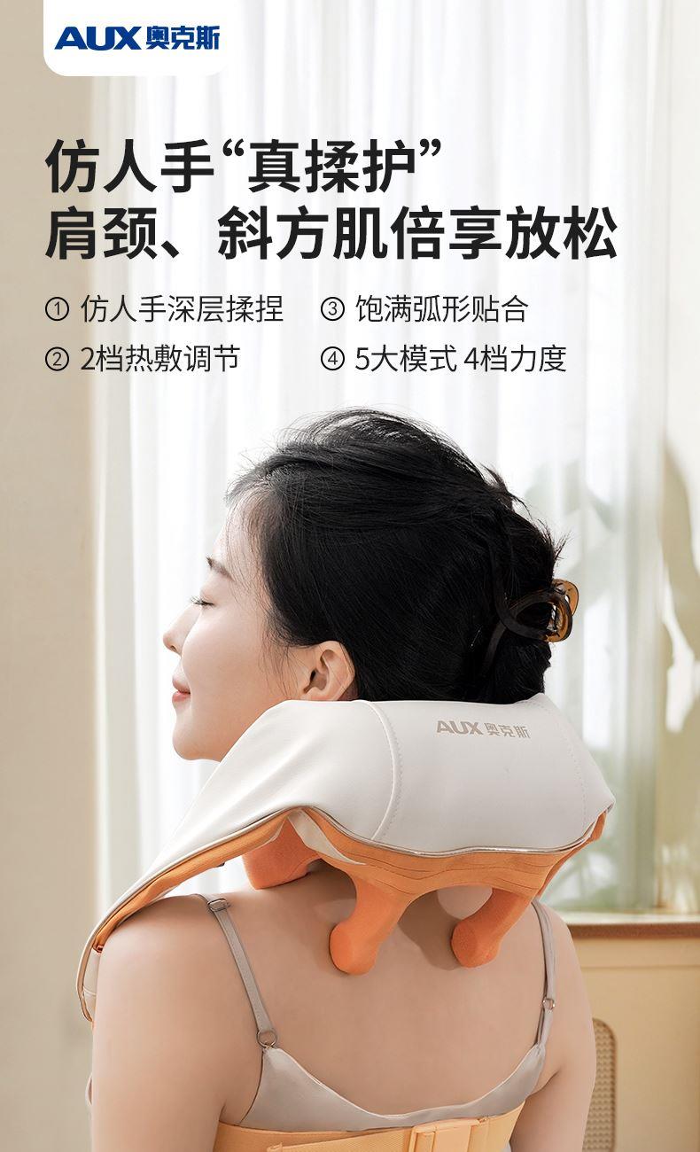 额定电压:5V 额定功率:10W 工作电压:7.4V 工作功率:15W 材 质:PU皮 > 穿戴便捷,解放双手,适合办公、居家等多场景使用 > 五种模式可选,四档力度,低高挡两种加热 > 满足多种需求,简单易操作,一键轻松掌控 > 模拟人手虎口八字揉拿法,拿捏斜方肌 > 斜方肌、肩颈、腿部等按摩,一机多用途