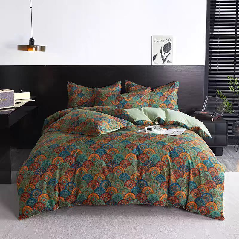 1:轻奢有氧棉,仿照双层纱风格,高极感十足。 面料经过特殊工艺处理后,织物表面色 尺寸: 被套:200*230cm*1 床单:245*250cm*1 枕套:48*74cm*2 面料:有氧棉 包装:彩盒