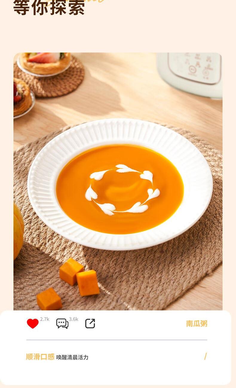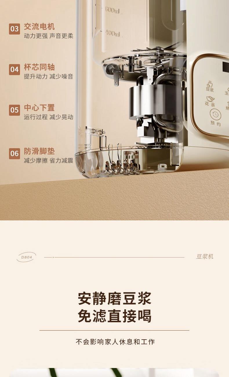 额定电压:220V~ 加热功率:500W 搅拌功率:210W 额定频率:50Hz 材质:内胆材质:304不锈钢,杯盖:PP,密封圈:硅橡胶,刀片、螺丝:304不锈钢 10叶钢刀破壁,干豆免泡直打 食品级304不锈钢杯,入口安心 低分贝降噪,不降口感 触选大屏,花式菜单一目了然 智能预约保温,起床即享