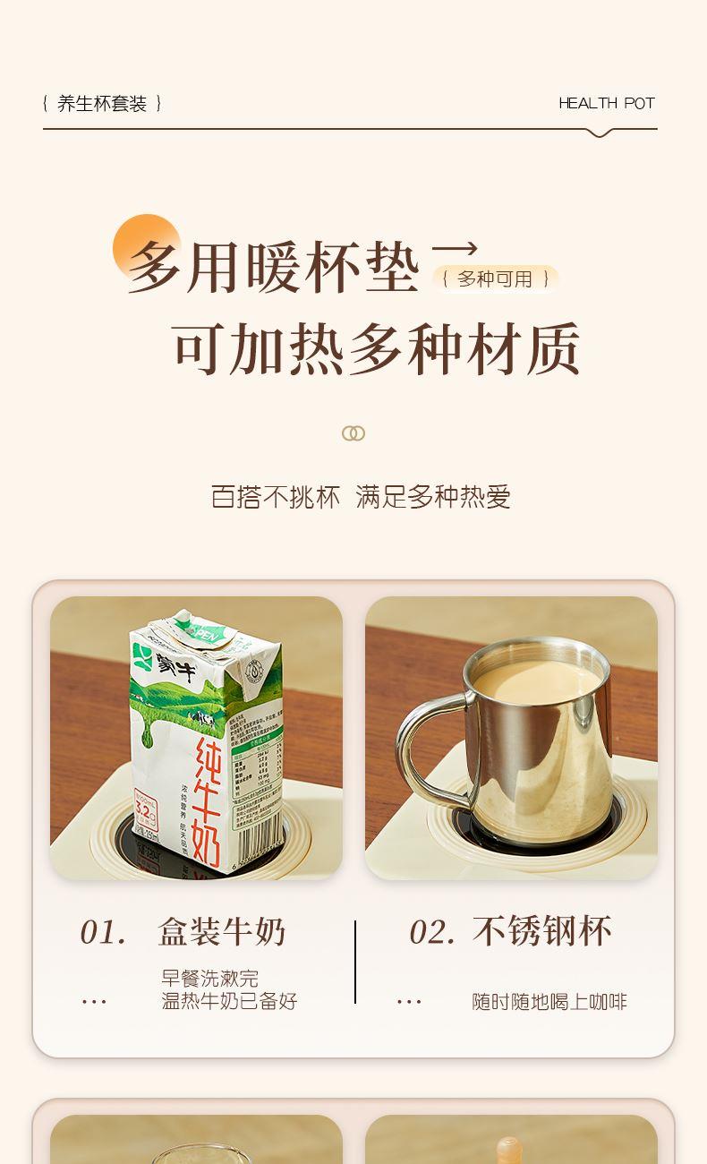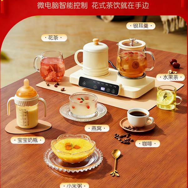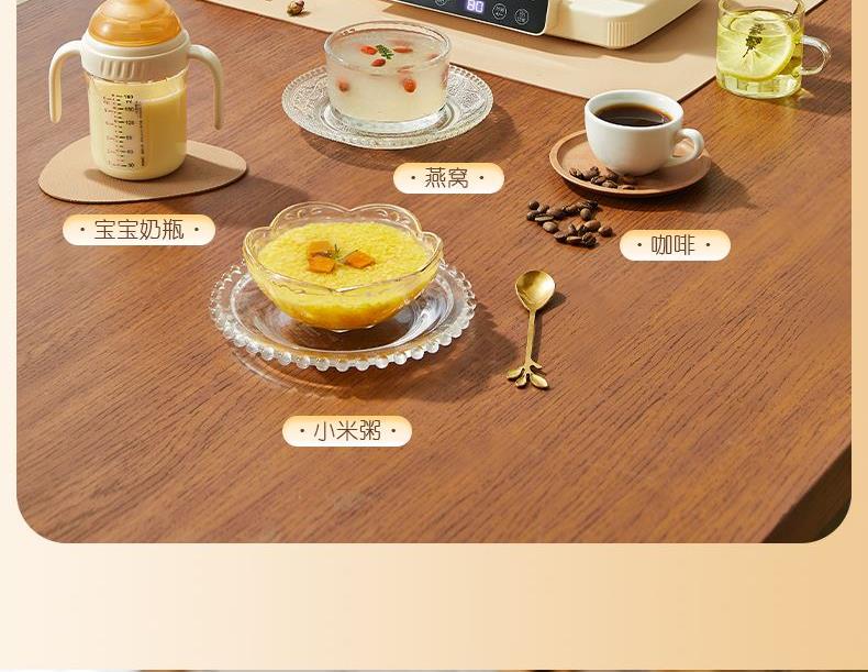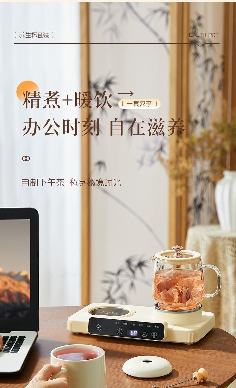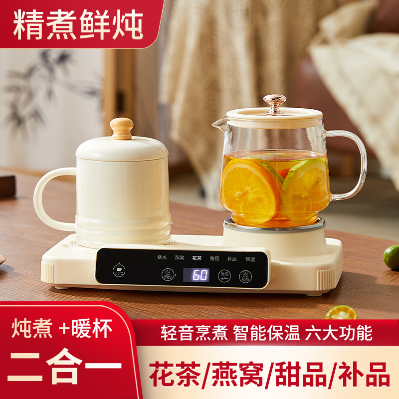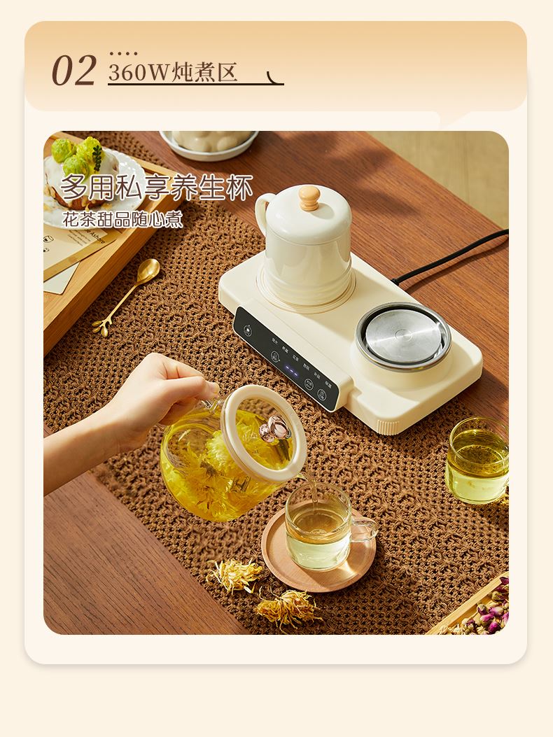 2、1壶1杯一套装,6大预设功能,15W暖饮,375W炖煮;