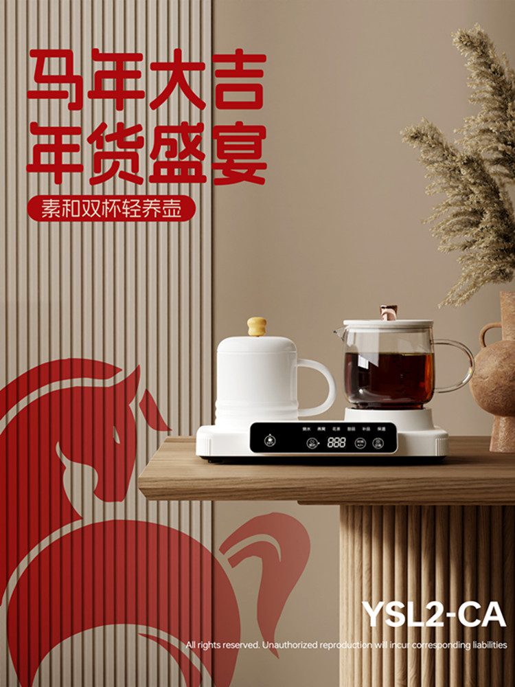 数显款-双炉沐茶影养生壶套装陶瓷款YSL2-CA大红包装