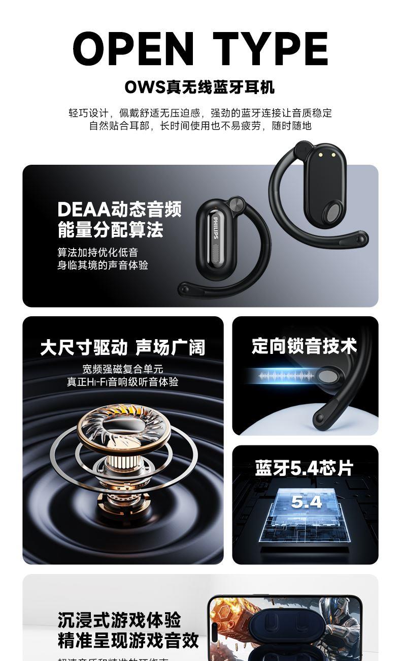 飞利浦(PHILIPS)开放式蓝牙耳机TAT4769