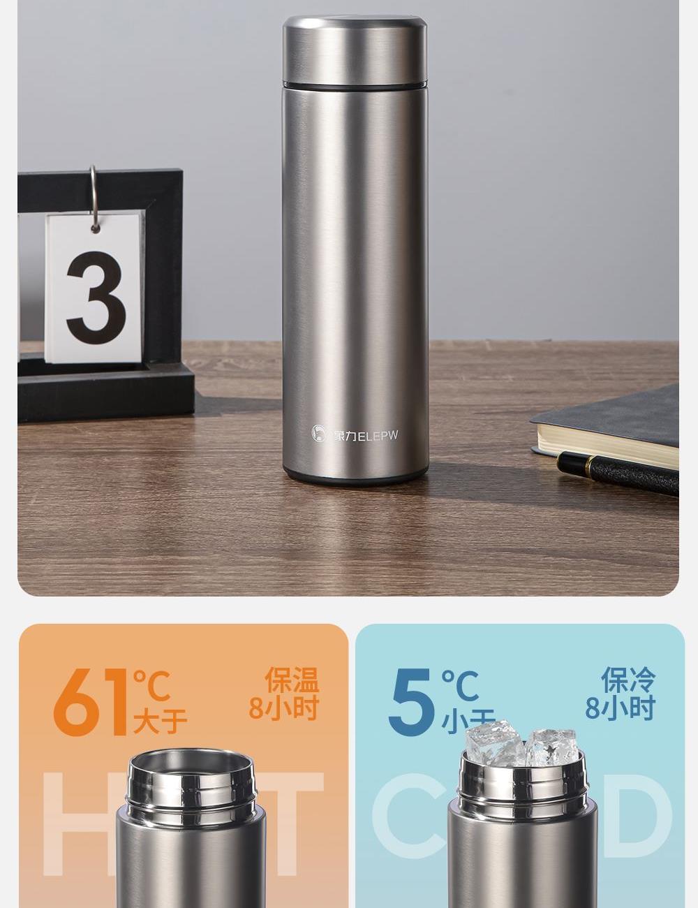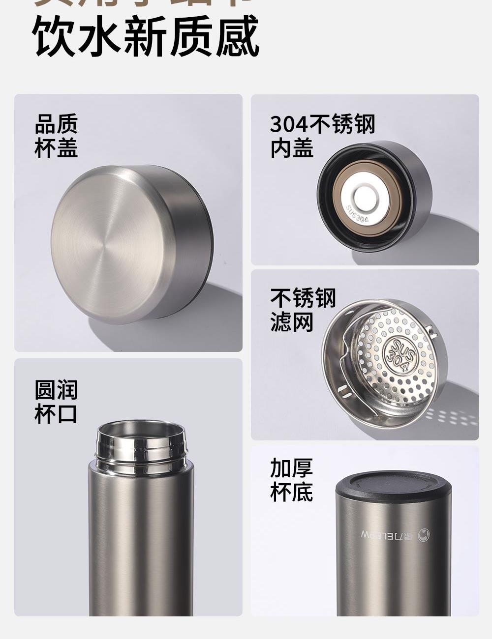 容量:450ML 颜色:枪色 本色 产品尺寸:高度 202×直径66cm 材质:杯盖 304不锈钢拉丝工艺食品级PP材料+304不锈钢内胆 采用食用级304不锈钢回流盖,内置304食品级不锈钢滤网 杯盖密封圈:食品级硅胶圈 包装:单瓦盒
