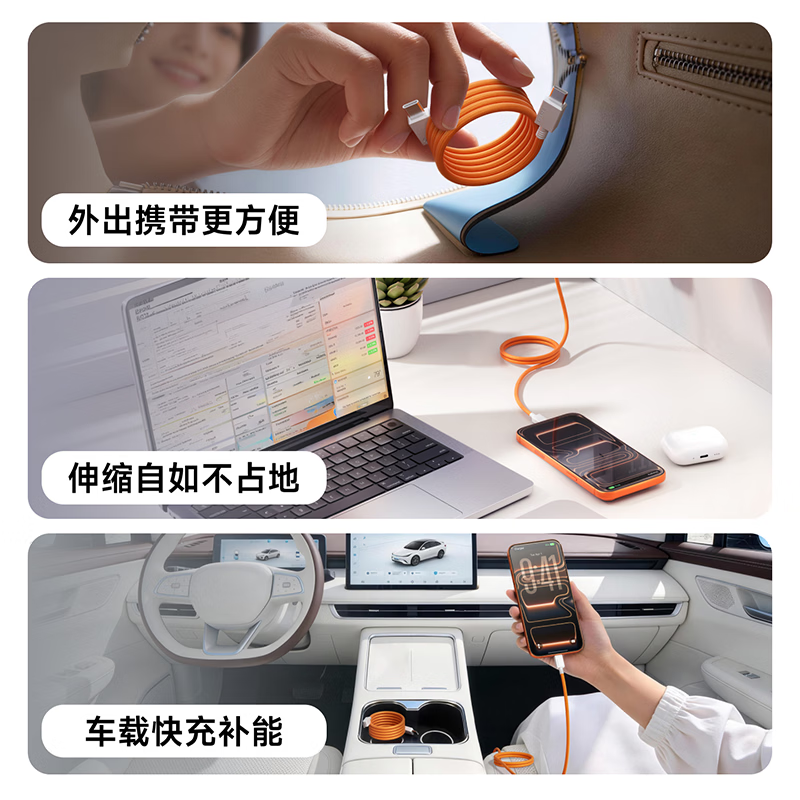 PD3.1协议,240W快充 纳米抗脏涂层编织线,坚韧耐用 E-Marker芯片,智控畅享安全快充 480Mbps传输数据,秒传不等待 手机、平板、笔记本,PD3.1安全快充不伤机 线身内置磁吸条,松手自动吸附收纳