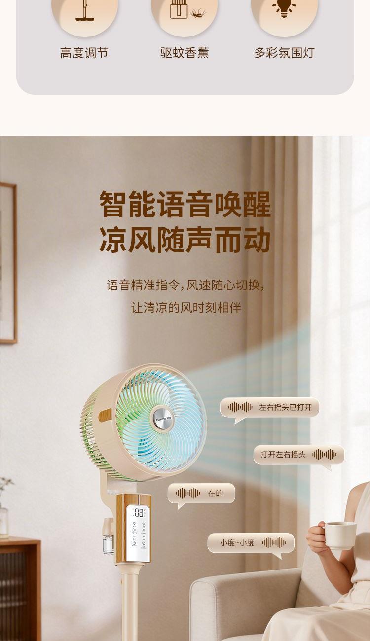 氛围彩灯+香薰驱蚊双效扇叶流转多彩柔光,氛围感满满;内置香薰+预留驱蚊盒,清新又防蚊