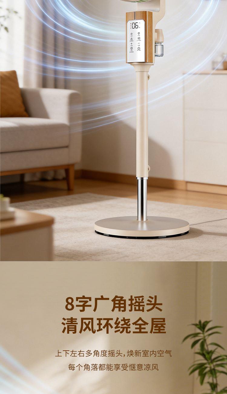 7m/s远距离劲风输送 超大倾角螺旋三叶设计,送风强劲更远,全屋快速降温
