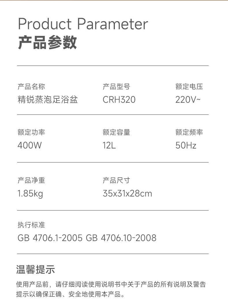 Chirimiri春枝漫野「精锐」蒸泡足浴盆CRH320